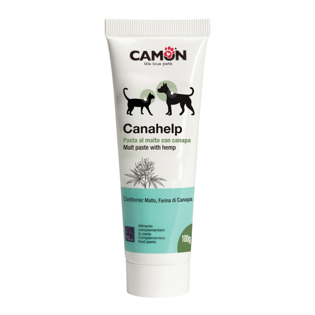 Camon Canahelp pasta je inovativna dodatna hrana za odrasle pse i mačke koja se temelji na djelovanju konopljine brašne. Upotreba konopljine brašne pomaže normalnoj nocicepciji (percepciji bola) i normalnom funkcionisanju endokanabinoidnog sistema, što je biološki sistem komunikacije između ćelija na centralnom i perifernom nivou. Ovaj sistem je jedan od najkompleksnijih i najvažnijih u našem organizmu, koji pomaže u regulaciji većine vitalnih funkcija. Takođe, održava homeostazu organizma, tj. njegovu delikatnu unutrašnju ravnotežu koja je podložna spoljnim uslovima okoline.
