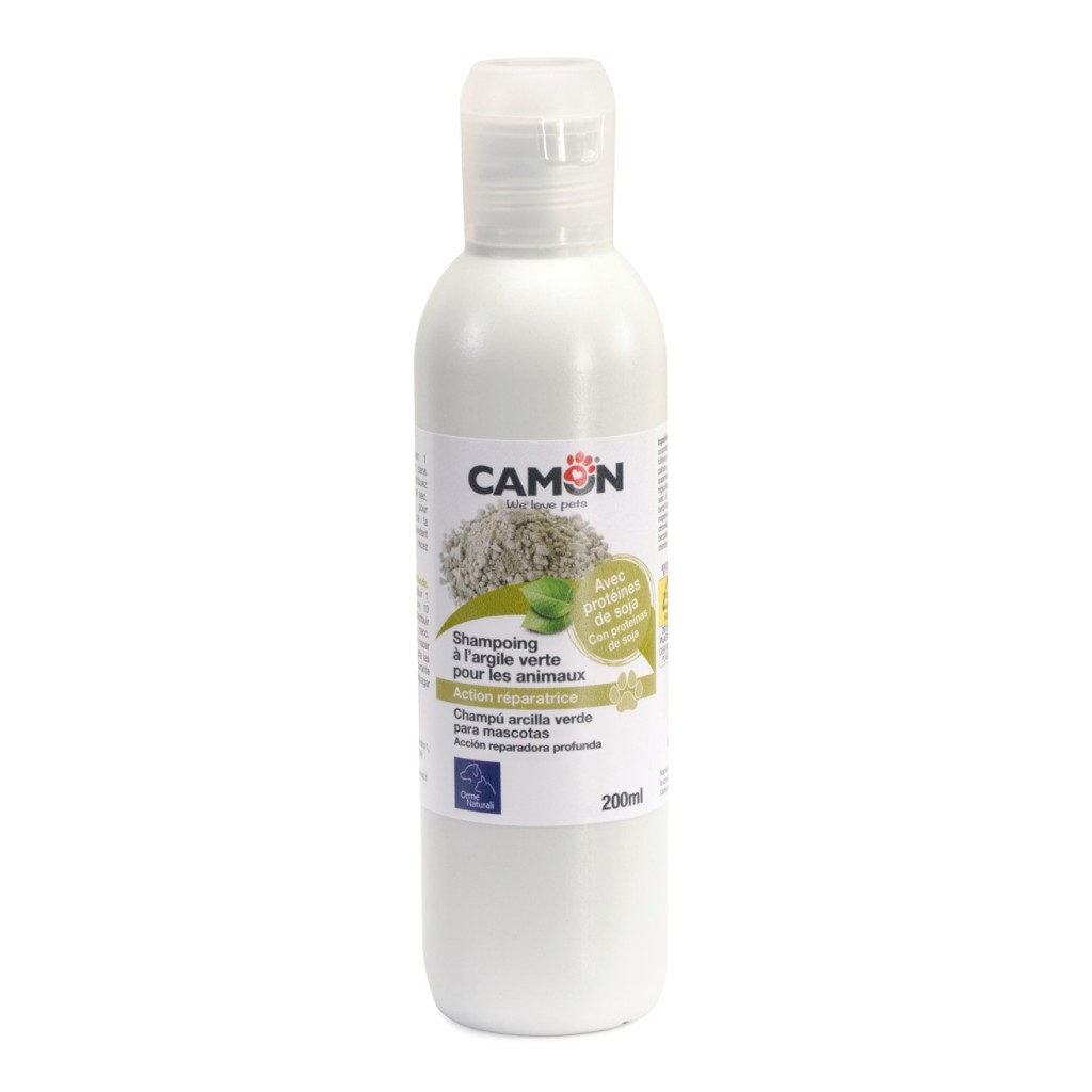Camon Šampon od zelene glina za pse dubinski čisti kožu i dlaku bez narušavanja njihovih prirodnih karakteristika. Zahvaljujući mineralizirajućim i hranjivim svojstvima, jača i obnavlja dlaku, pruža elastičnost i tonus koži te osvježava. Sojini proteini dodatno njeguju i pospješuju regeneraciju.