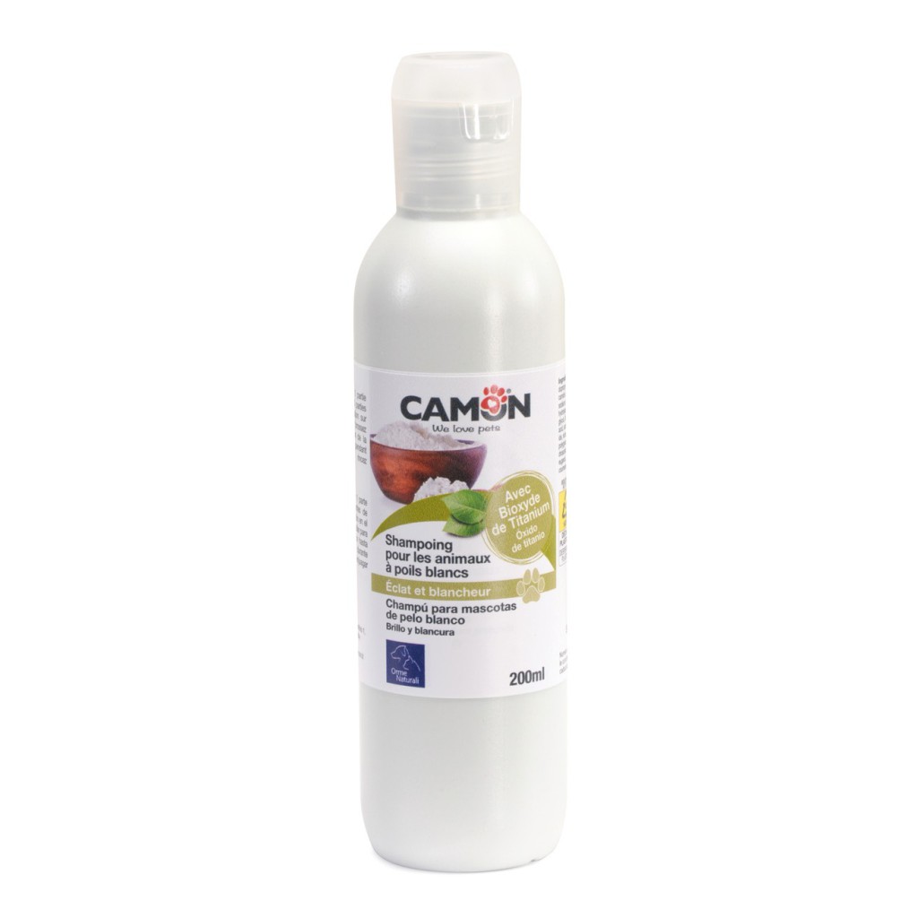 Camon Šampon za bijele pse dubinski čisti, čini krzno bjeljim i mekšim, te ga štiti od žućenja. Zahvaljujući dragocjenim prirodnim sastojcima, potiče zdravo i snažno krzno i kožu, pružajući ljubimcima svjež i njegovan izgled.