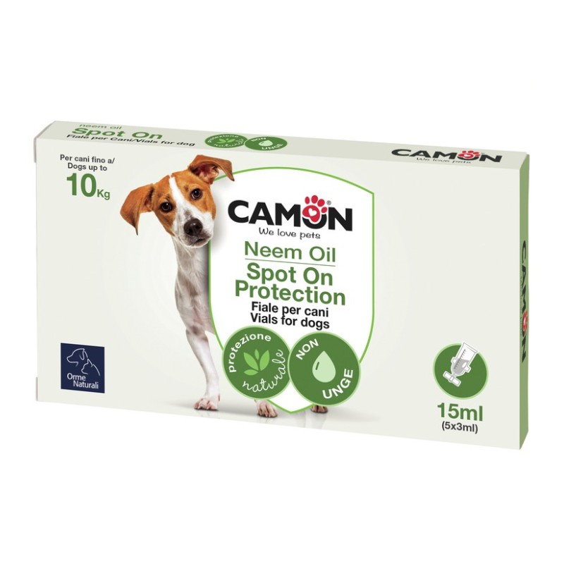 Camon Spot-on ampula s Neem uljem pruža prirodnu i sigurnu zaštitu pasa od vanjskih parazita bez štetnih nuspojava. Ove ampule su jednostavne za upotrebu, brzo djeluju i posebno su pogodne za štence, starije i bolesne pse, kao i za pse u kontaktu s djecom, te tokom graviditeta i dojenja. Aktivni sastojak, čisto Neem ulje, djeluje kao prirodni repelent koji štiti od buha, krpelja i drugih nametnika.