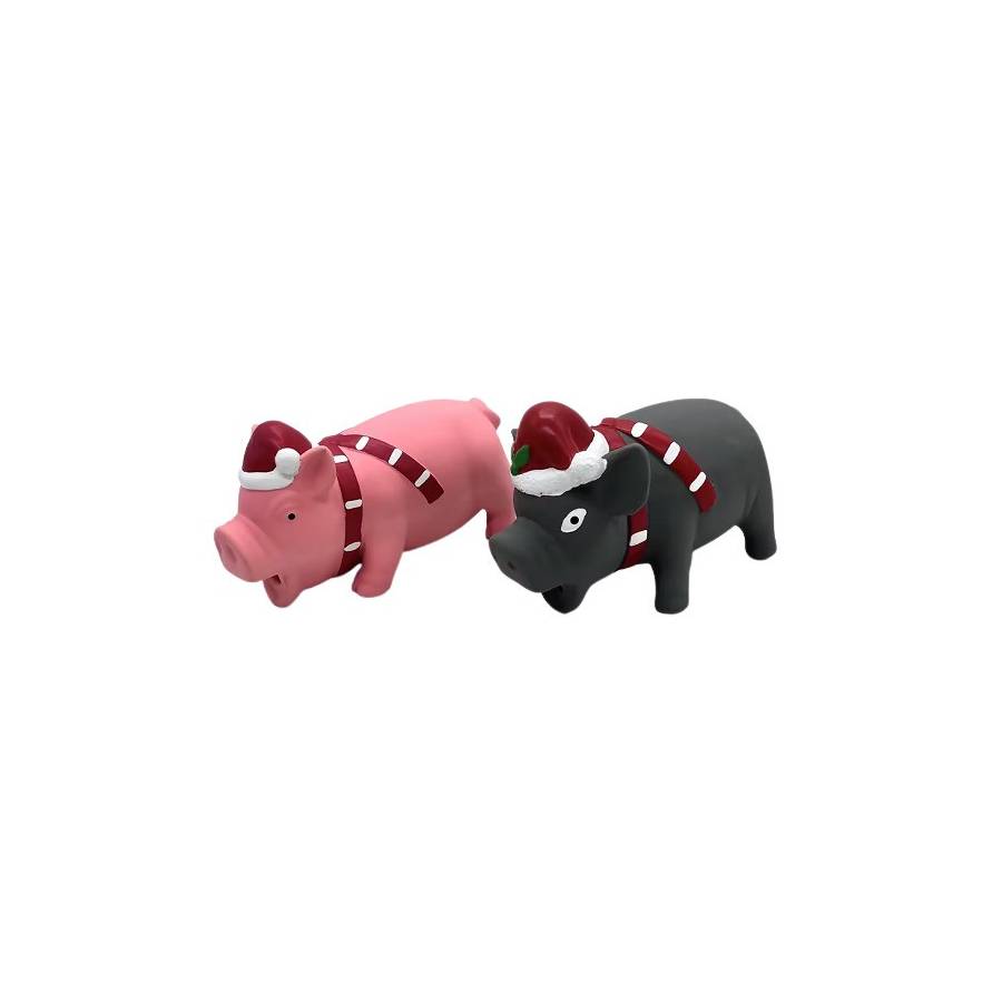 Igračka za pse – prasić od lateksa s božićnim šeširom je simpatična igračka za pse u obliku praščića od lateksa s božićnim šeširom. Opremljena unutarnjim piskačem.