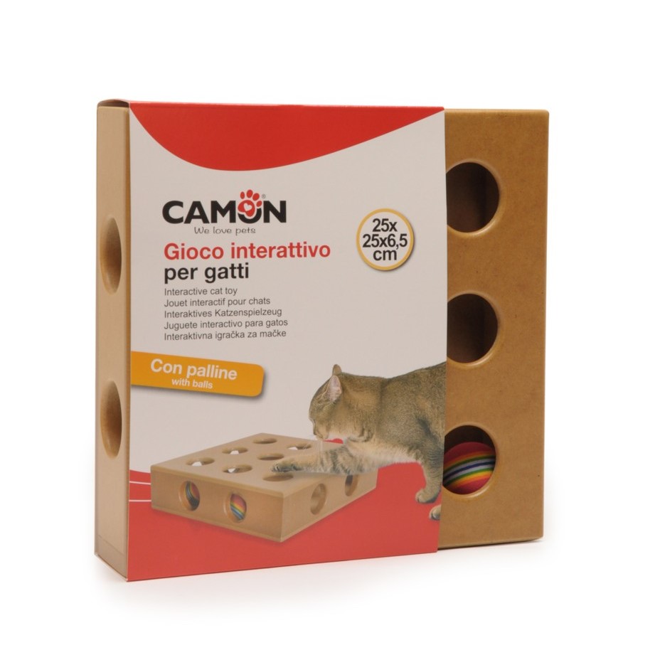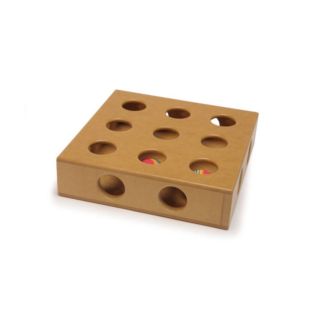 Mačka će biti potaknuta da uhvati 2 obojene loptice koje se nalaze u igrački, ostajući aktivna i živahna.