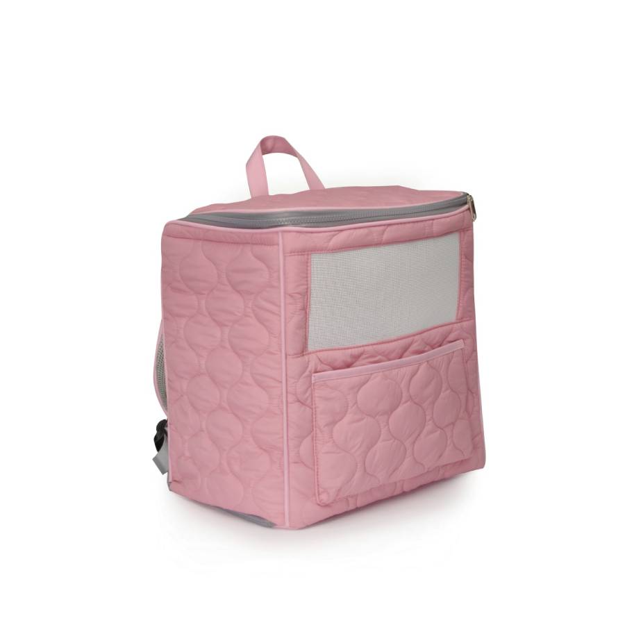 Ružičasta prošivena torba za ljubimce odlikuje se lijepim i elegantnim dizajnom kao i praktičnošću. Mrežasti uložak potiče izvrsnu cirkulaciju zraka i, štoviše, omogućuje životinji da se razgleda. Torba je opremljena praktičnim prednjim džepom.