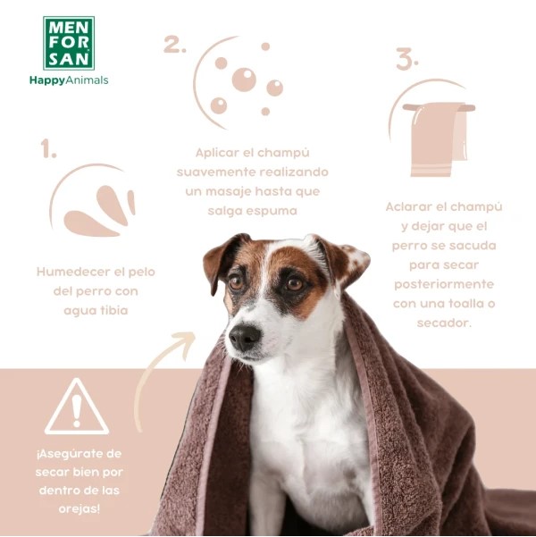 Navlažite krzno s puno tople vode. Nanesite šampon na vrat, leđa i noge. Umasirajte u bogatu i kremastu pjenu i ostavite da djeluje nekoliko trenutaka.